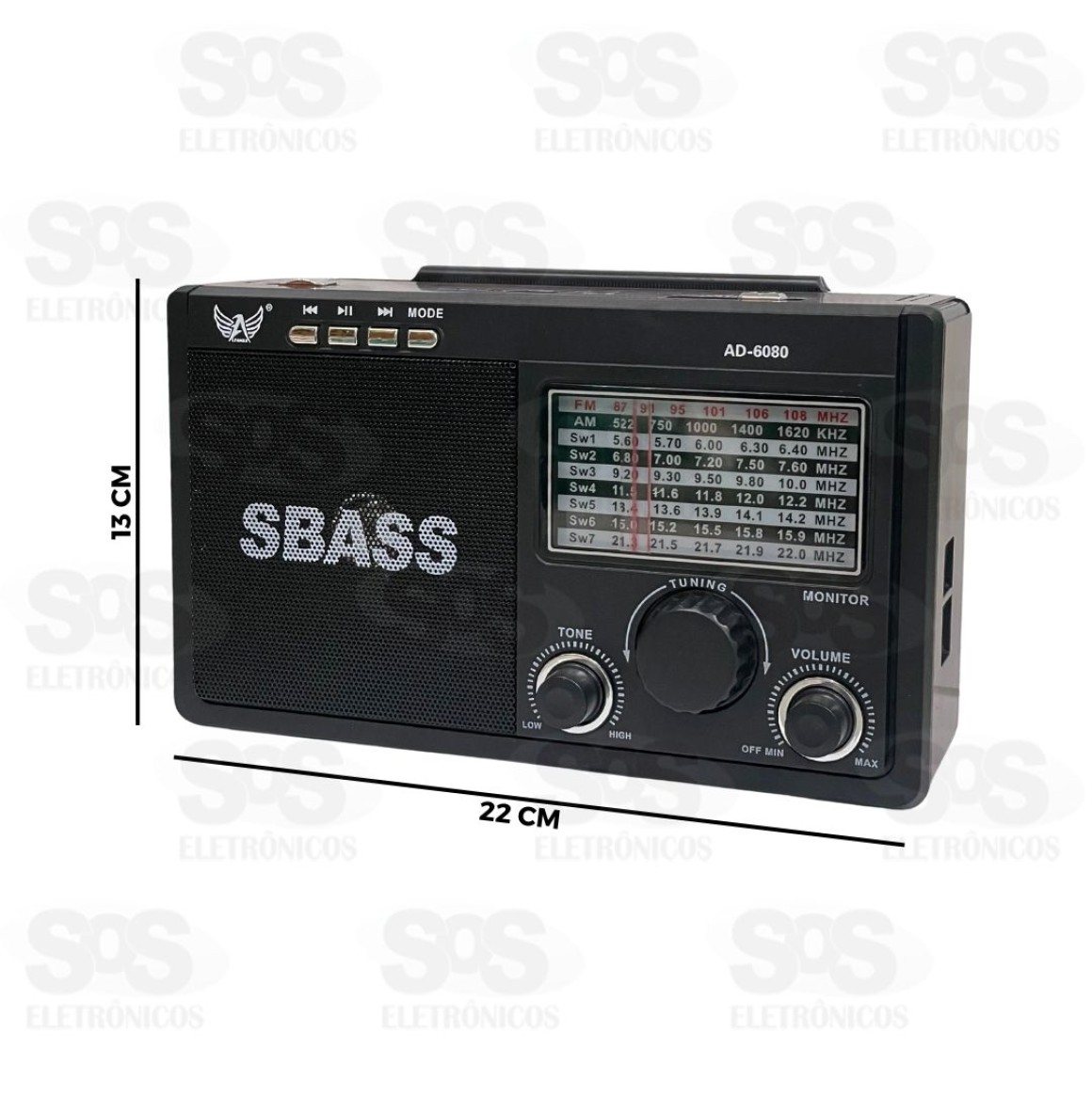 Rádio Retrô 9 Bandas Com Lanterna Altomex AD-6080 Rádio receptor de 9 bandas, possibilitando a sintonização FM, AM e SW 1-7. Conta também com conexão bluetooth, além de entradas para USB, AUX e cartão TF. Bateria recarregável via cabo Type-C. Acompanha alça para transporte e lanterna. Tamanho: 22 x 13 cm Cores variadas.