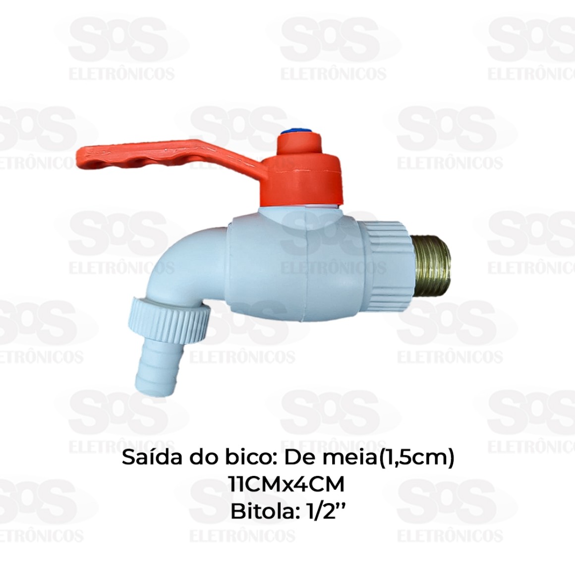Torneira esfera para jardim ou tanque em plástico 1/2".Latão encapado de plástico.Com bico para mangueira de 1/2".Ótimo acabamento