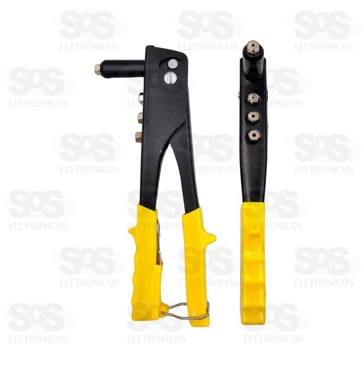 Descrição: Alicate rebitador específico para aplicação de rebite pop em aluminio, lonas, couro, ferro e madeira. Alça de borracha. 4 tamanhos de rebite - 2.4mm / 3.2mm / 4.0mm / 4.8mm