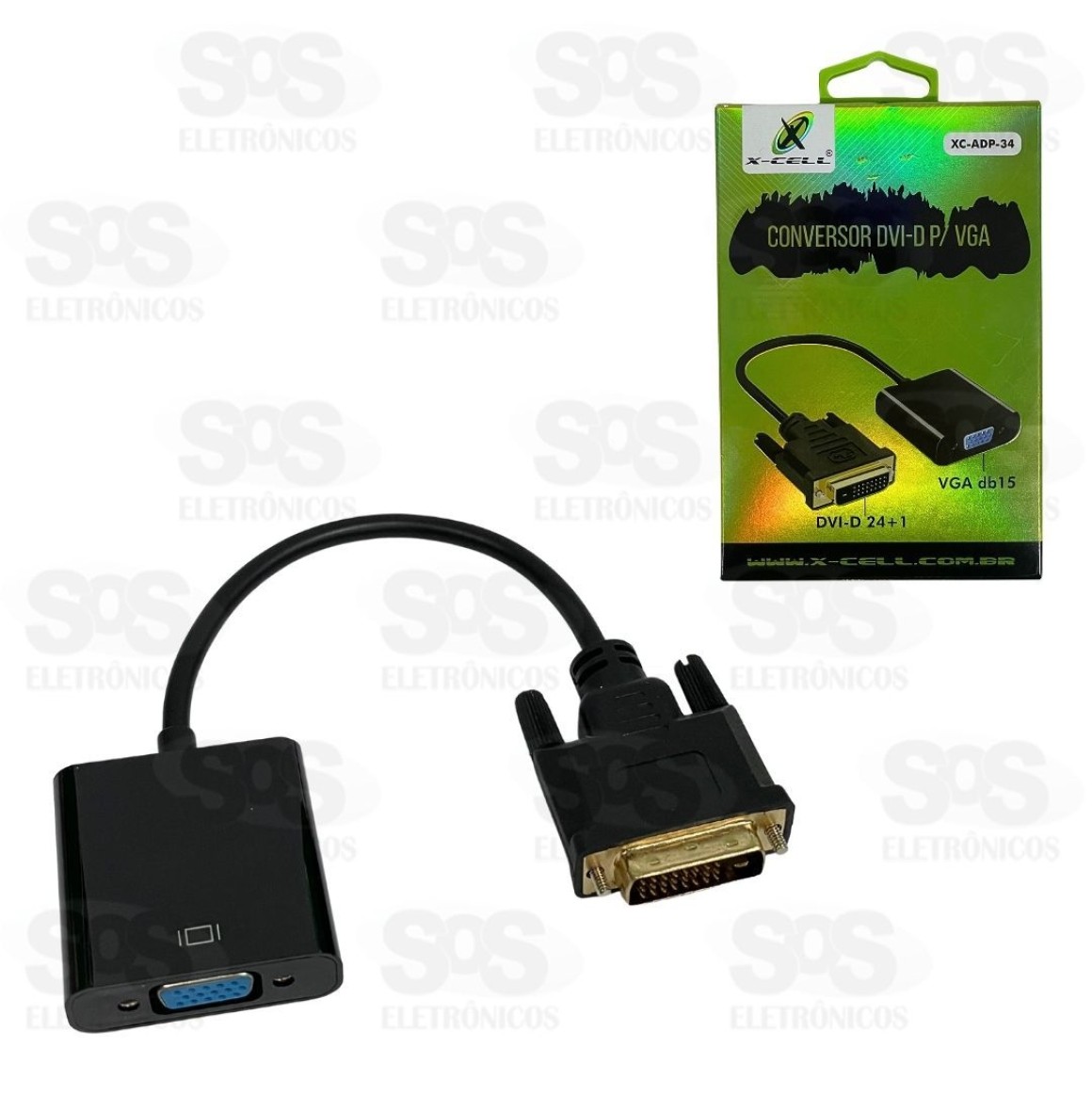 Cabo Conversor DVI-D Para VGA X-Cell XC-ADP-34 Ideal para converter qualquer saída DVI-D (24+1) para VGA sem perder qualidade de vídeo. Para computadores, projetores ou televisões. Material: Plástico ABS Comprimento: 24 cm