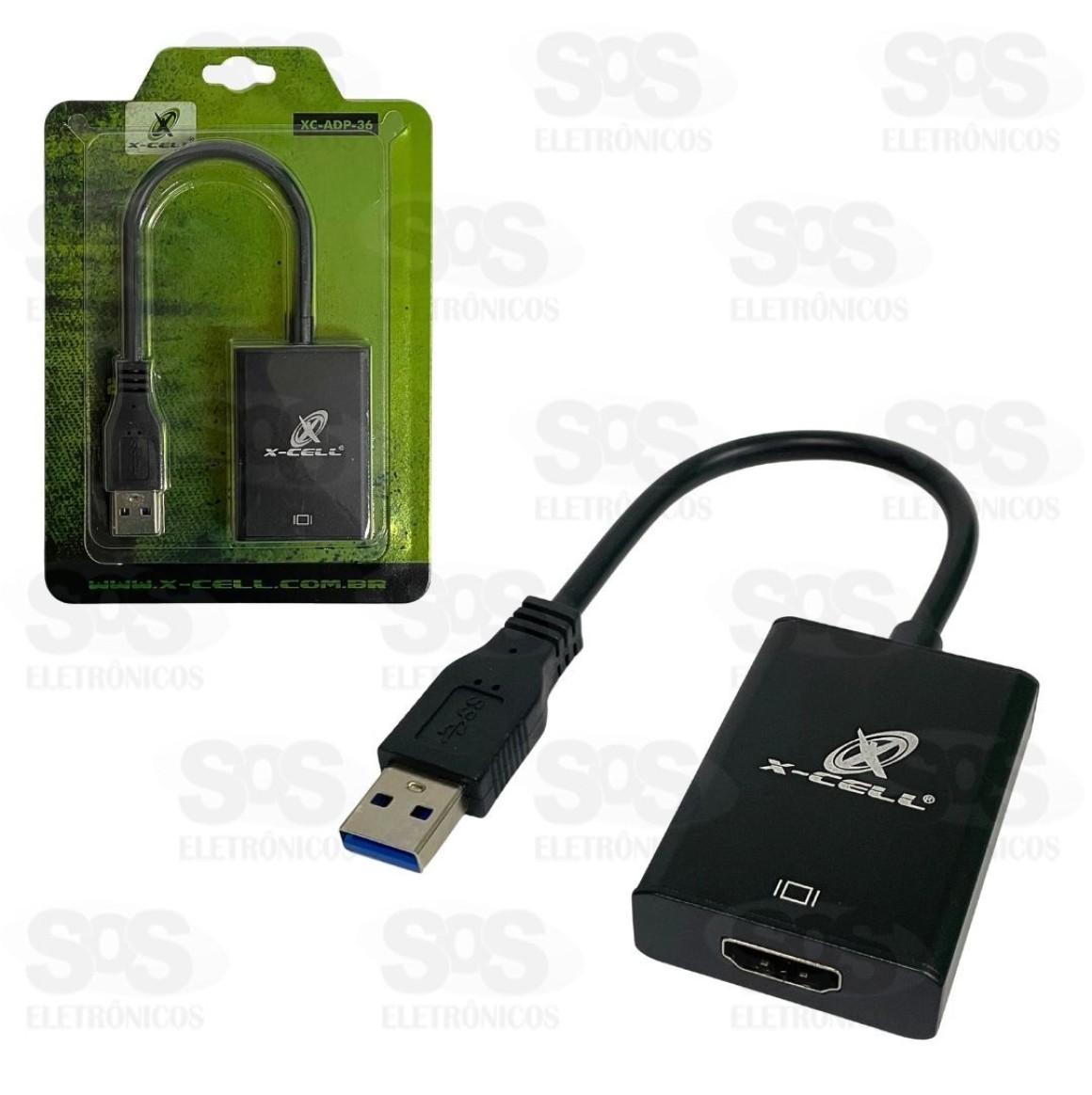 Cabo Conversor USB Para HDMI X-Cell XC-ADP-36 Conversor USB macho para HDMI fêmea ideal para conectar computadores, projetores, televisores, etc. Resolução: 1080p / 60Hz Velocidade: 5.0 Gbps Tamanho: 20 cm