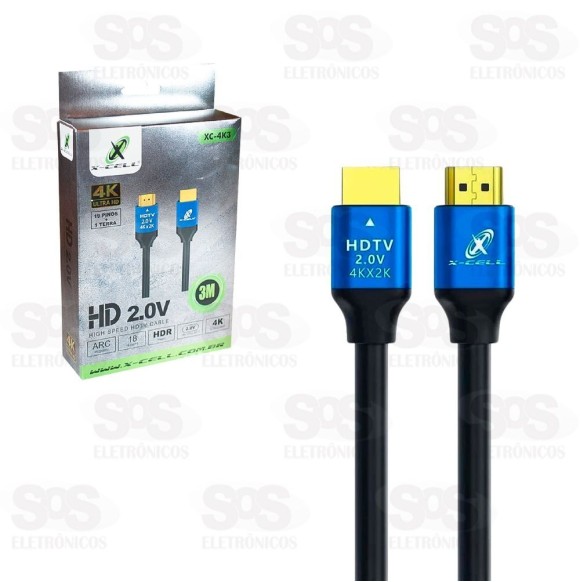 Cabo HDMI 4K ultra HD ideal para monitores, TVs, notebooks, consoles e outros aparelhos com entrada HDMI. Máxima fidelidade e performance livre de interferências. Suporta resolução de 4K ultra HD. Conectores em cobre blindado e revestimento em PVC flexível. Velocidade de até 18Gbps. Tamanho: 3 metros