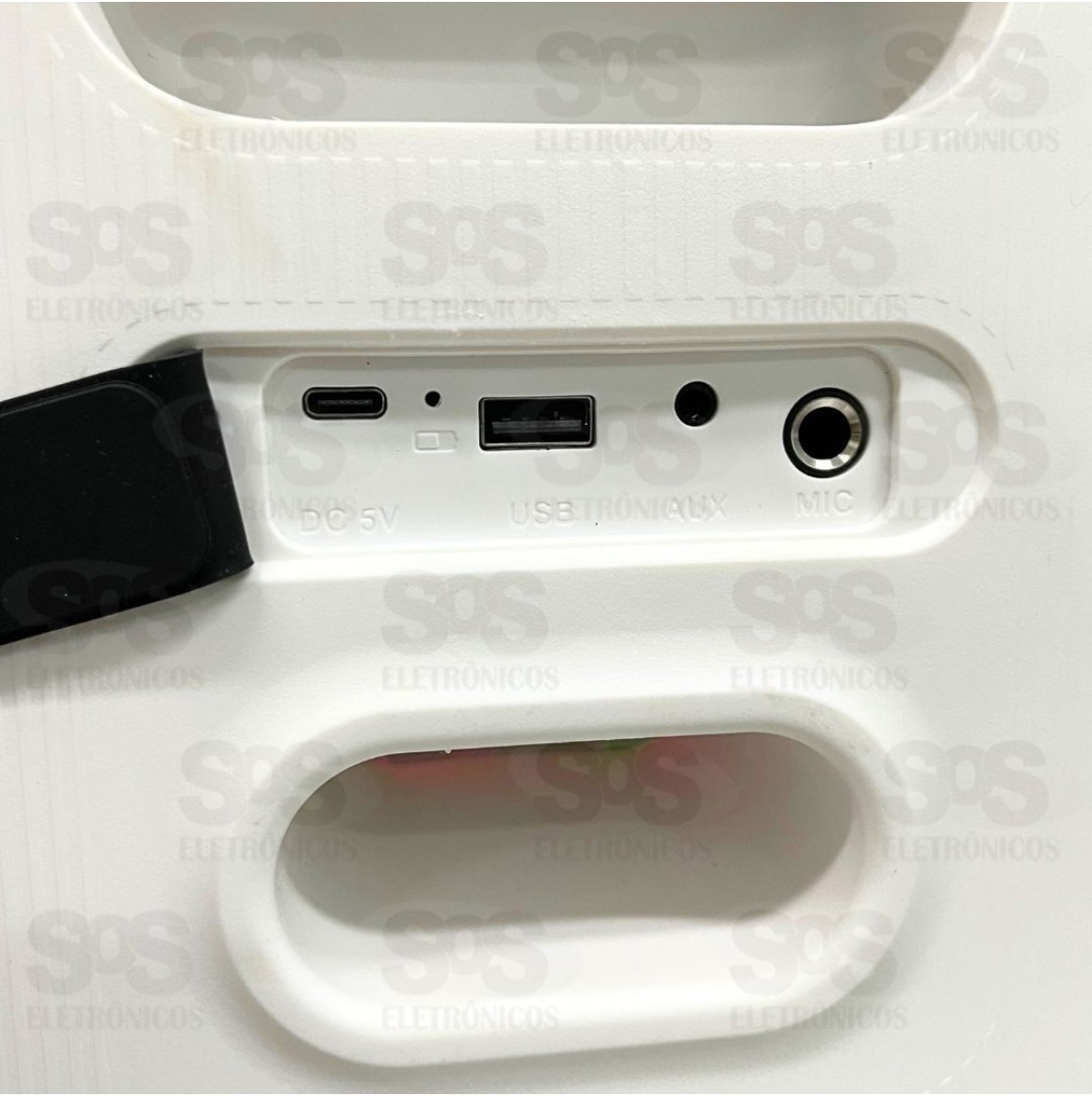 Entrada para USB, cabo AUX e Microfone.