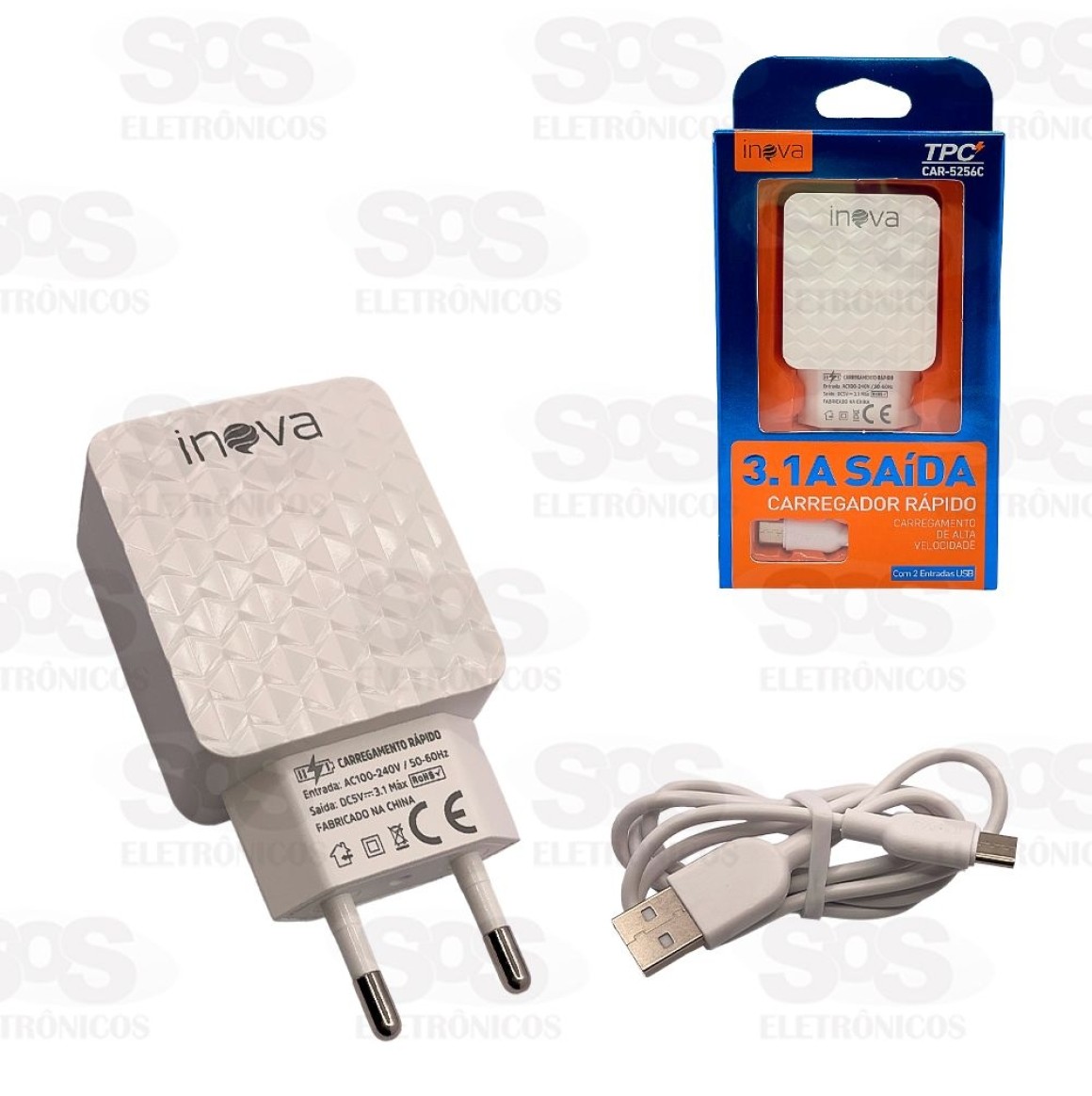 Carregador 2 USB 3.1A Com Cabo Type C Inova CAR-5256C Carregador rápido e inteligente, carregue seus aparelhos eletrônicos com segurança e velocidade. Sistema de proteção contra sobrecarga e com chip inteligente. Conta com 2 entradas USB. Cabo Type-C de 1 metro. Carregamento de alta velocidade e seguro. Cores variadas