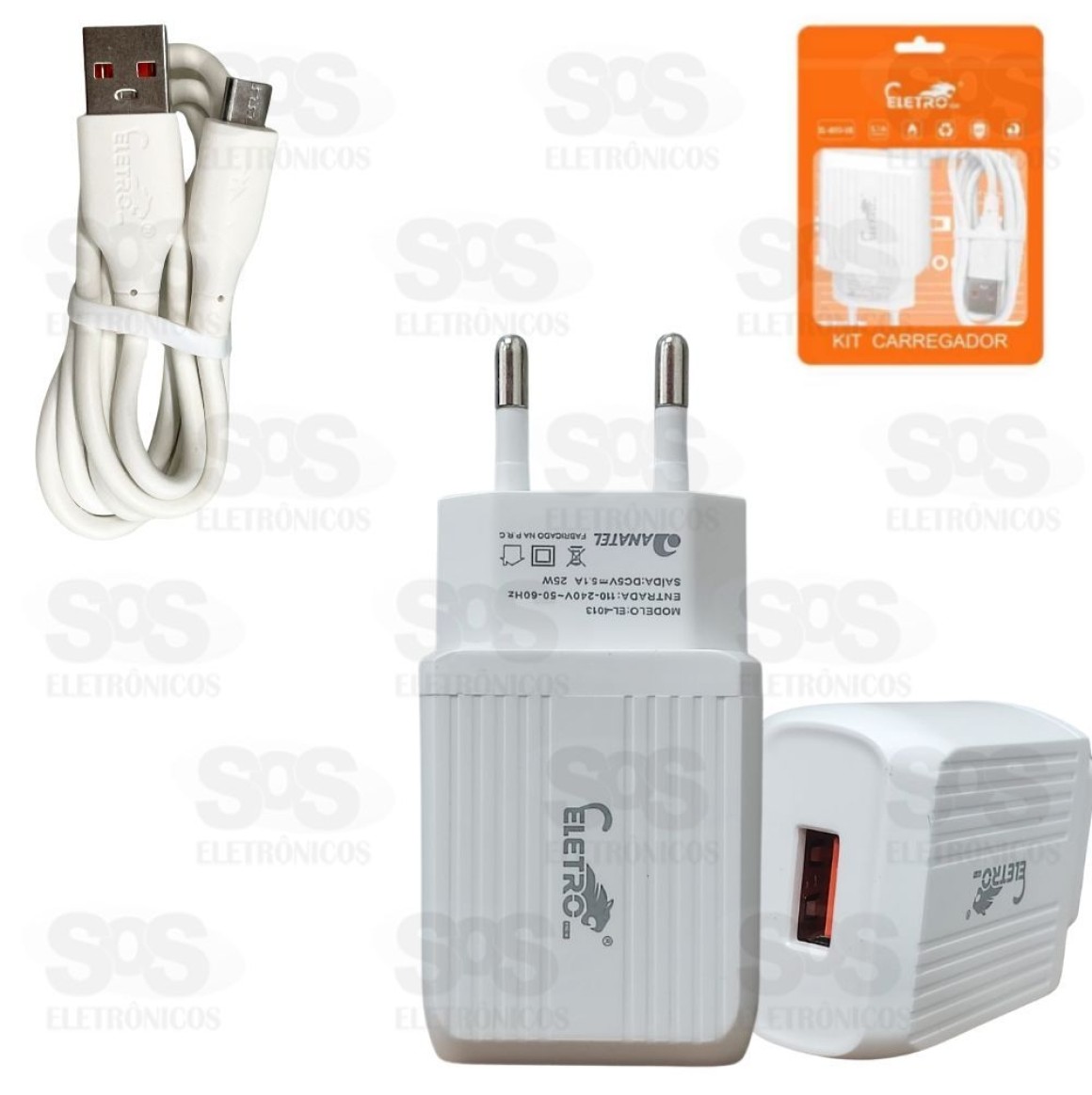 Carregador 25W USB 5.1A Cabo Micro USB V8 Eletromex EL-4013-V8