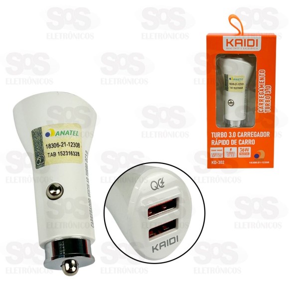 Carregador Automotivo Turbo 2 USB 3.0 36W Kaidi KD-302