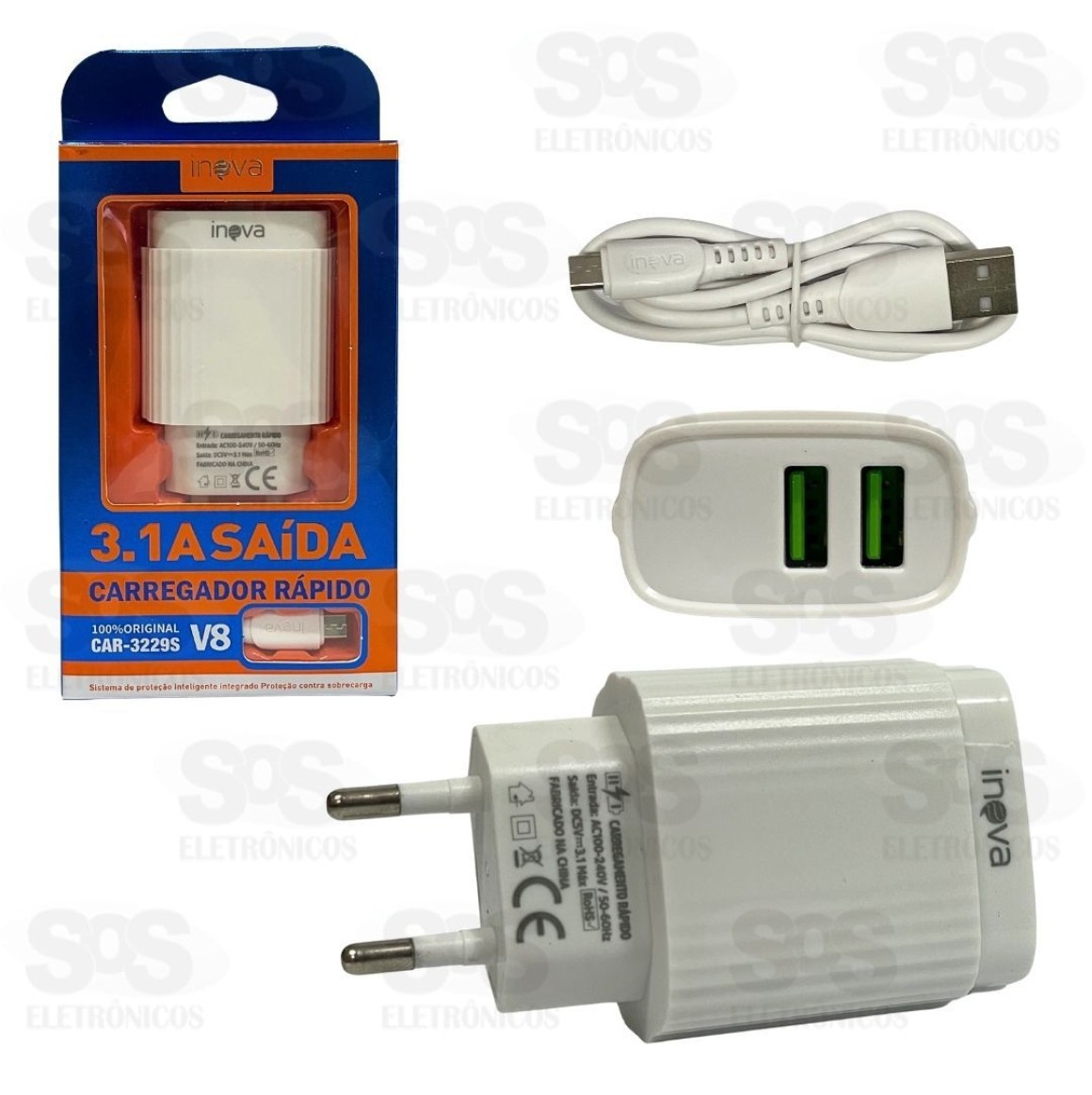 Carregador Rápido 2 USB 3.1A Cabo Micro V8 Inova CAR-3229S