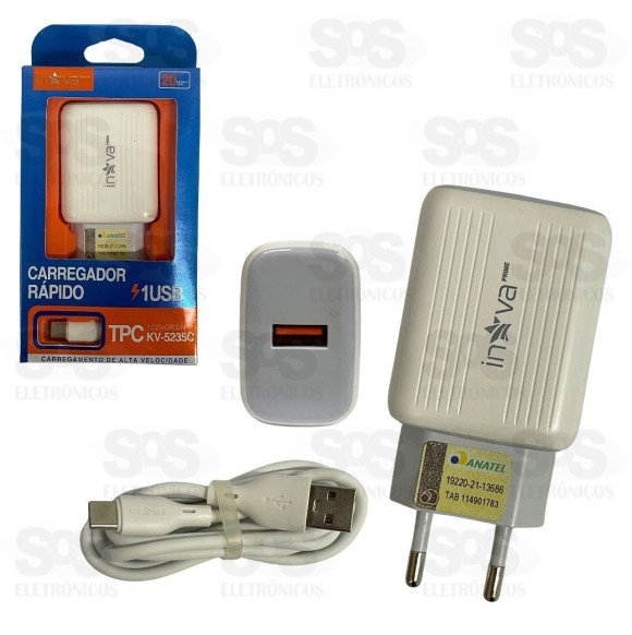 Carregador Rápido 20W Com Cabo Type C Inova KV-5235C Ideal para você carregar aparelhos com segurança e rapidez. Carregamento turbo, que não vicia e nem danifica a bateria do celular. Proteção contra backflow, estática e curto-circuito. Acompanha um cabo Type-C de 1 metro.