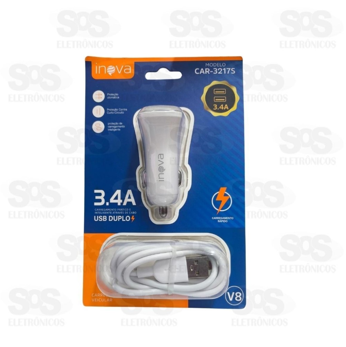 Carregador Veicular 2 Portas USB 3.4A Cabo Micro USB V8 Inova CAR-3217S