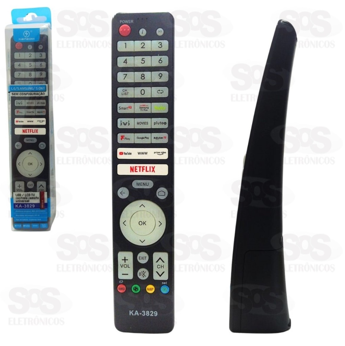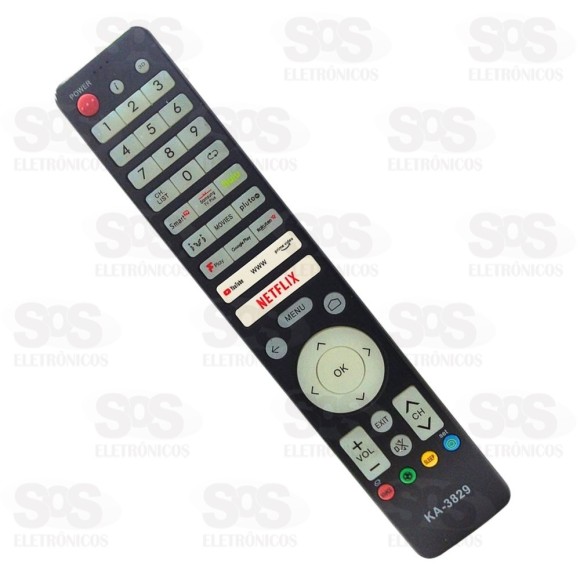 Com botões para SmartTV, como Netflix, YouTube, GloboPlay, Google Play, entre outros.