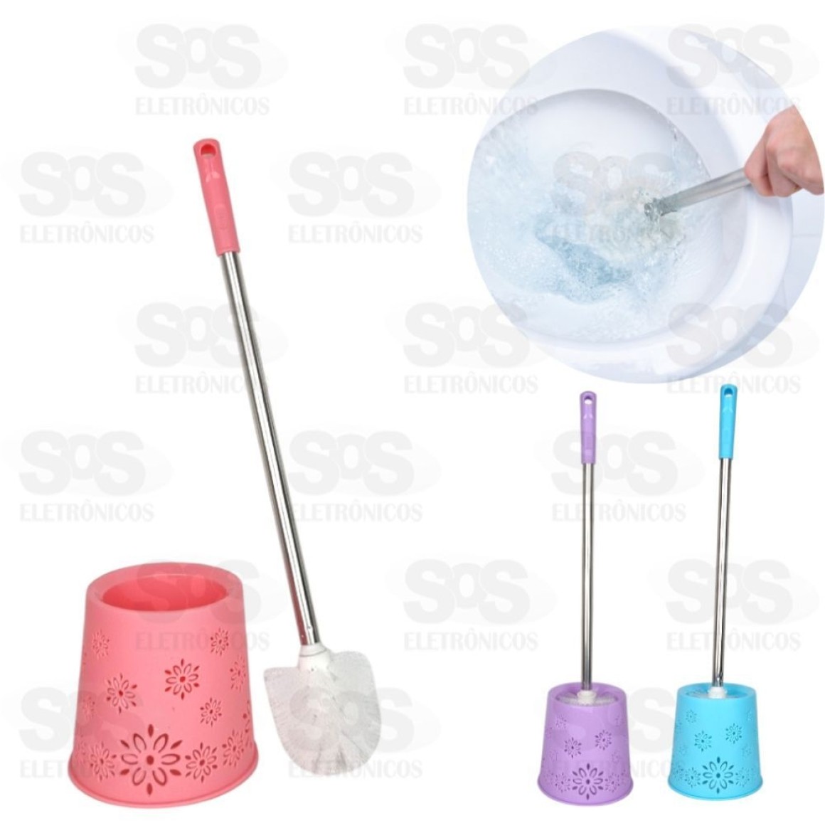 Escova sanitária para banheiro, com cerdas flexíveis e suporte em aço inox.