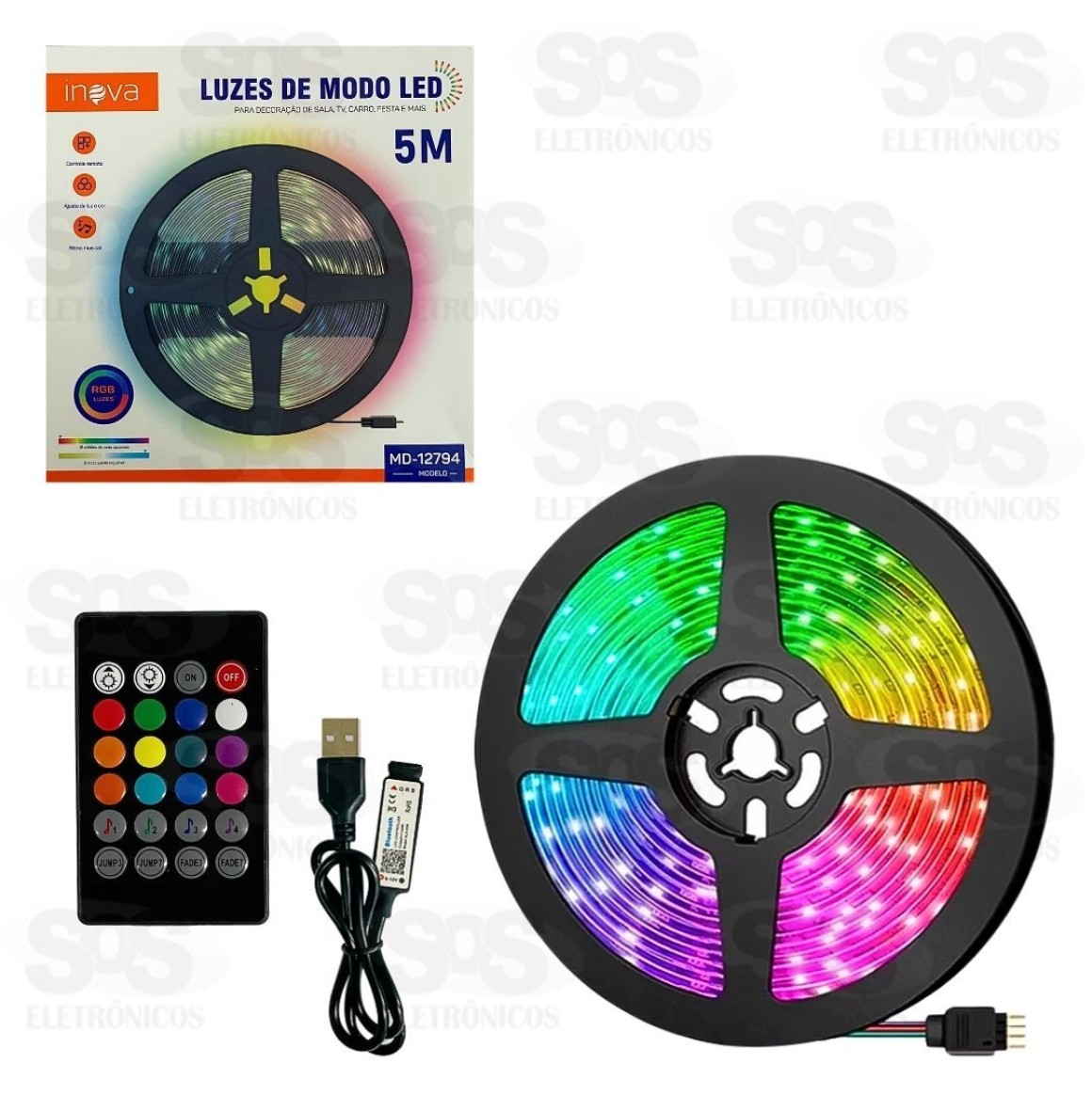 Fita de LED Colorida Com Controle 5 Metros Inova MD-12794