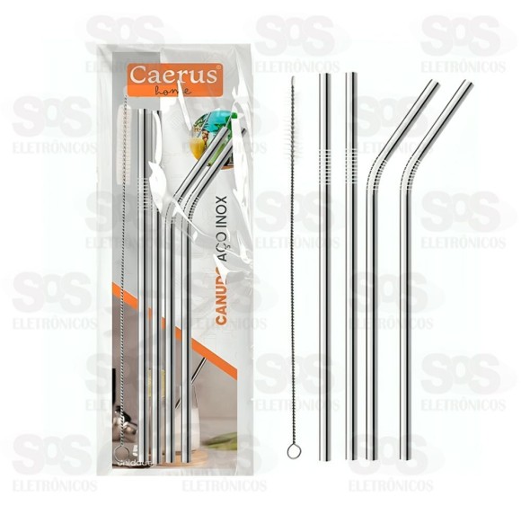 Kit Canudos Aço Inox 5 Peças Caerus CRS-2813