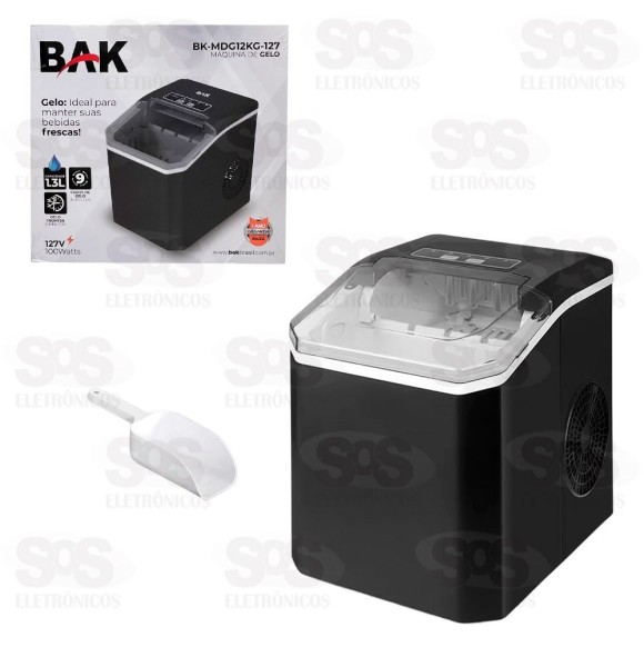 Máquina De Gelo 1.3 Litros Bak BK-MDG12KG-127 Máquina de gelo ideal para deixar as bebidas frescas o tempo todo. Fabricação de até 9 gelos a cada 8 minutos. Silenciosa e fácil de usar. LED indicador que avisa quando é preciso adicionar mais água. Design leve e portátil. Tampa dobrável à prova de sujeiras. Fácil de limpar. Acompanha cestinha e pá para pegar os gelos. Capacidade: 1.3 litros Voltagem: 127V Tamanho: 26,5 x 29 x 22 cm Cores variadas