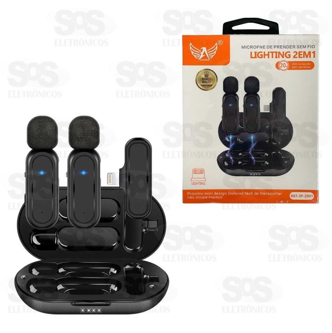 Microfone De Lapela Duplo Sem Fio Lightning Altomex K61-IP-2IN1