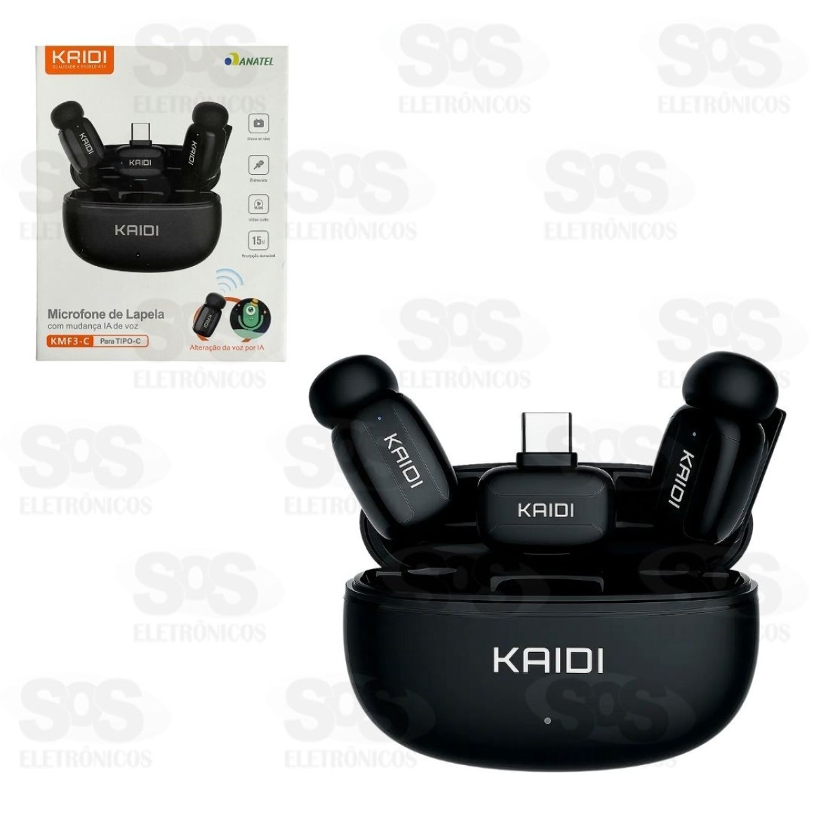 Microfone De Lapela Duplo Sem Fio Type C Kaidi KMF3-C