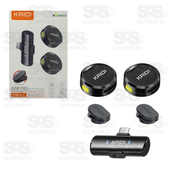 Microfone De Lapela Duplo Sem Fio Type C Kaidi KMF4-C