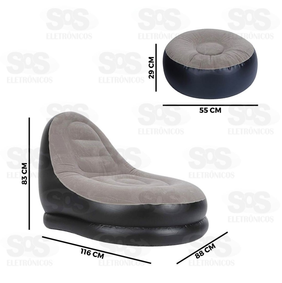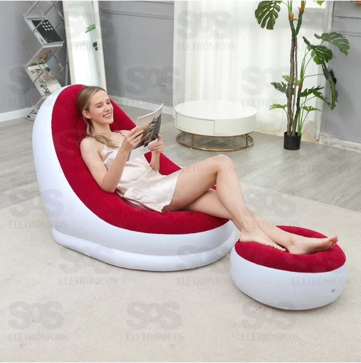 Poltrona Inflável Com Puff Tomate MC-45 Esse sofá inflável lounge com puff para os pés é moderno, sofisticado e confortável. A superfície é revestida com material aveludado para um toque de luxo e delicadeza. Possui fundo reforçado resistente contra perfuração. Dobrável e compacto que facilita desmontar e guardar, este conjunto de sofé e puff é ótimo para praticamente qualquer ambiente. Material: Plástico PVC Tamanho da poltrona: 116 x 88 x 83 cm Tamanho do puff: 55 x 29 cm Cores variadas.