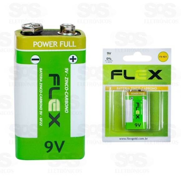 Bateria de Zinco Carbono 9V Unitário Flex FX-9Z1