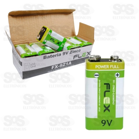 Bateria de Zinco Carbono 9V Caixa Com 10 Unidades Flex FX-9Z1A
