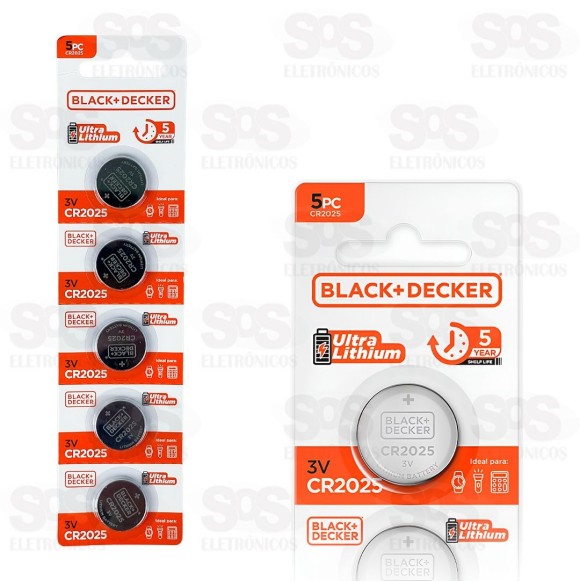Bateria Moeda Ultra Lithium CR2025 3V 5 Unidades Black Decker