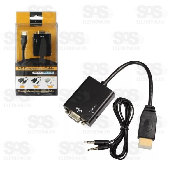 Conversor HDMI para VGA com AUDIO converte a conexão digital HDMI em conexões analógicas de vídeo VGA e Áudio. É a solução para conectar computadores, DVD/ Blu-ray playes, receptores de home theater, consoles de vídeo games ou dispositivos eletrônicos com saída HDMI e transmitir vídeo e áudio em TVs, monitores e projetores.
