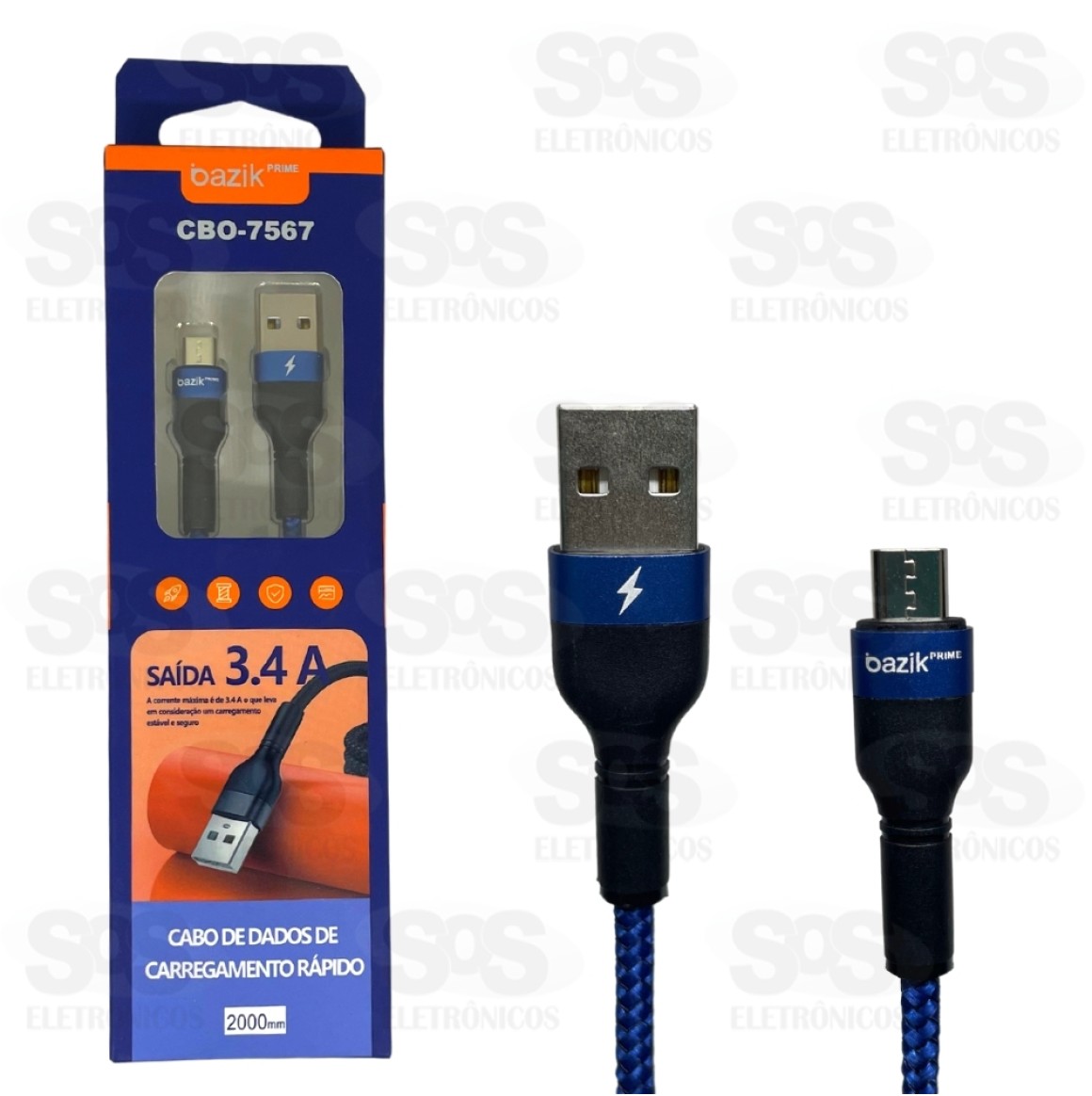 Cabo Micro USB V8 2 Metros 3.4A Bazik Prime CBO-7567
