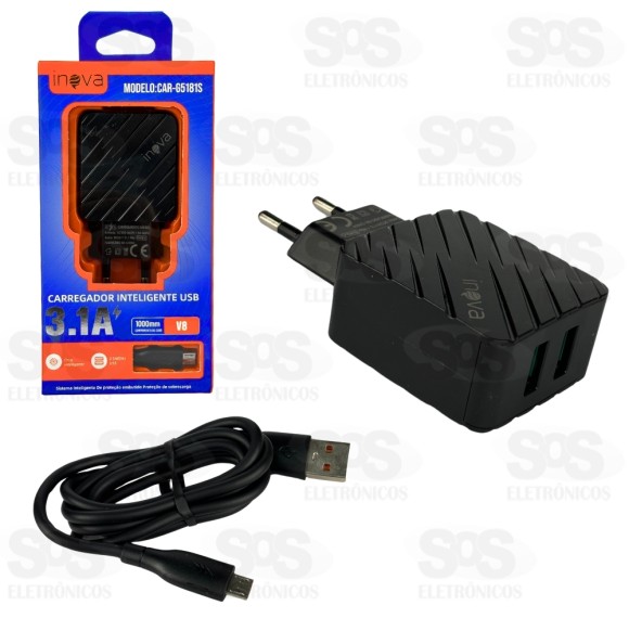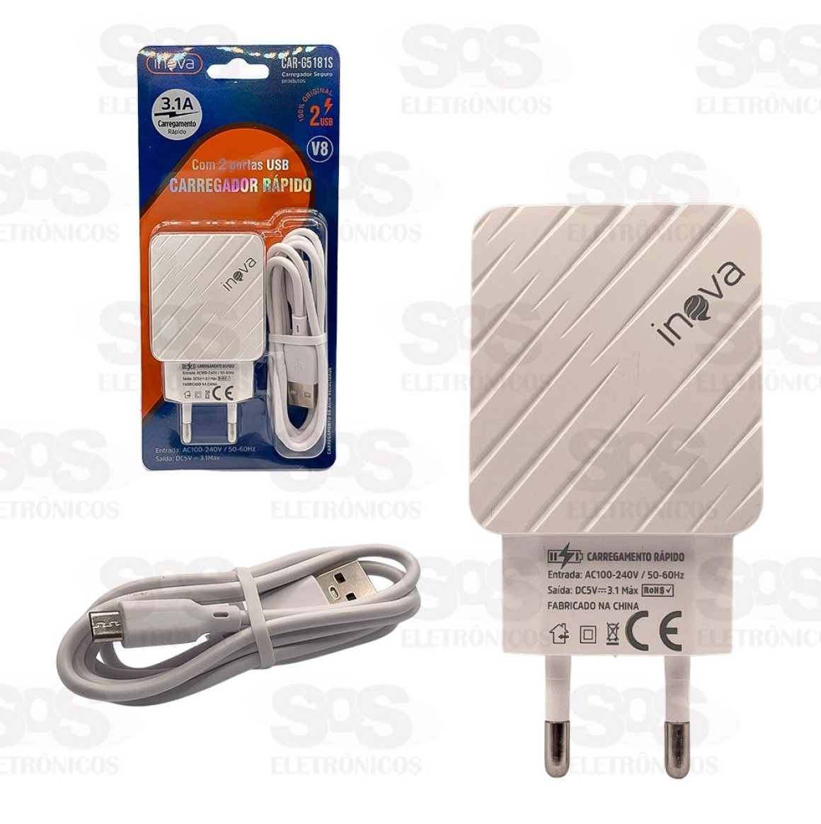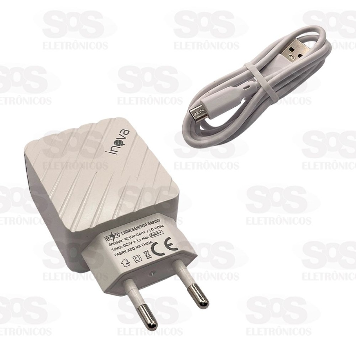 Carregador Rápido 2 USB 3.1A Com Cabo Micro V8 Inova CAR-G5181S