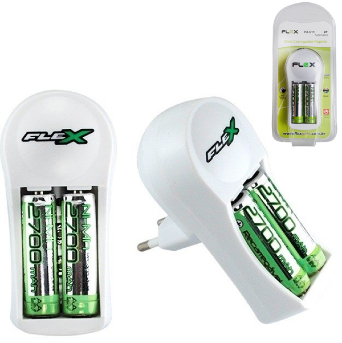 Acompanha 2 pilhas recarregáveis AA 2700mAh