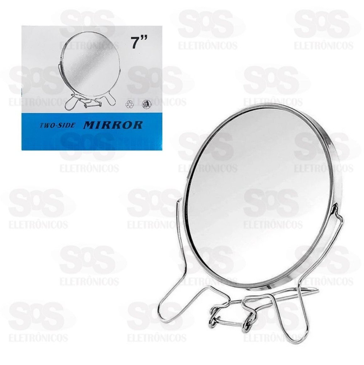 Espelho Dupla Face Com Zoom 7 Polegadas AIH1109 Ideal para maquiagens, provar óculos, troca de lentes de contato, barbear, limpeza de pele, etc... Um dos lados é um espelho com aumento. Material: Ferro Tamanho: 16 cm