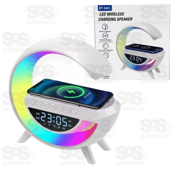 Luminária G Com Relógio Caixa De Som E Indução BT-3401